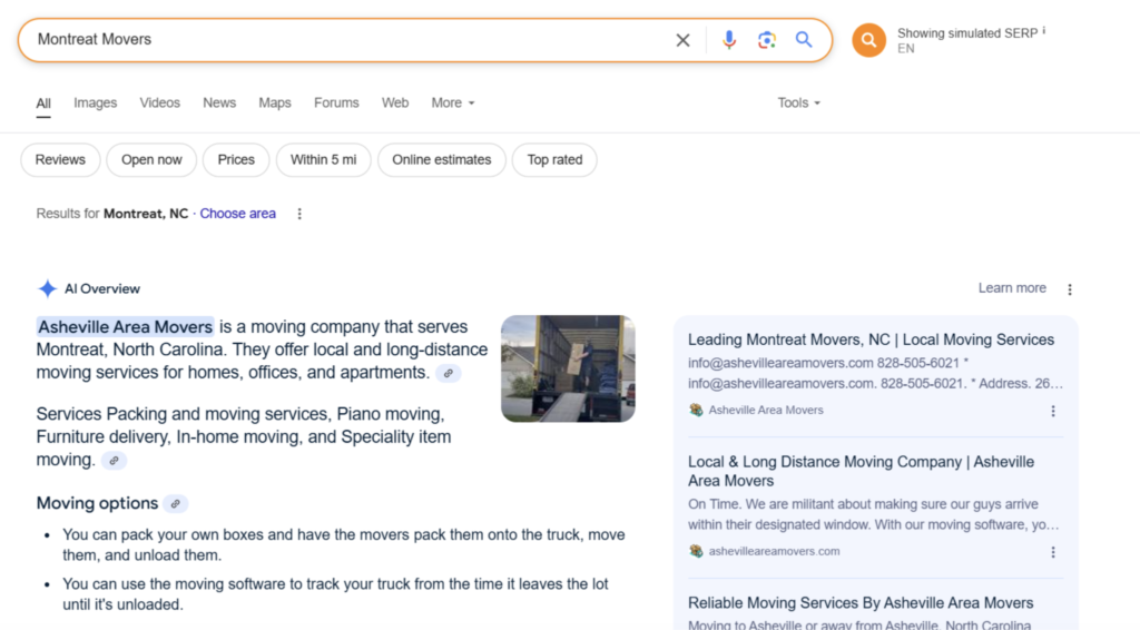We got a moving company featured prominently in Google’s AI Overview for their primary service keywords.